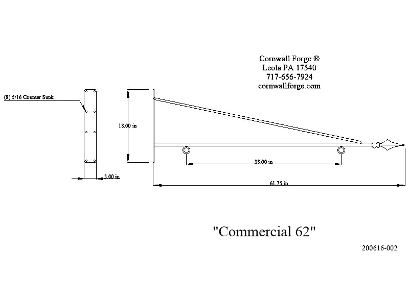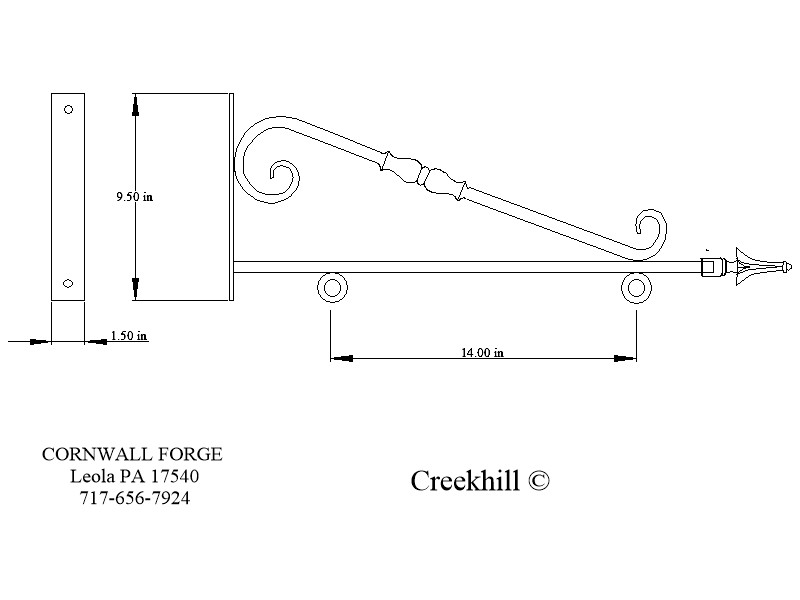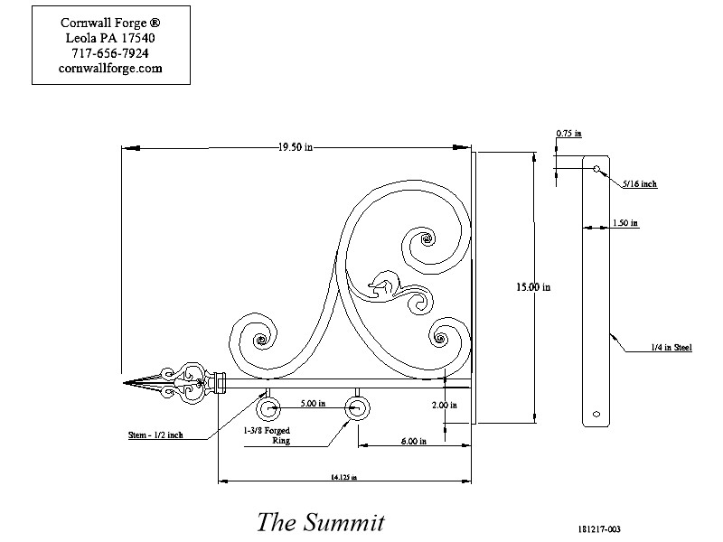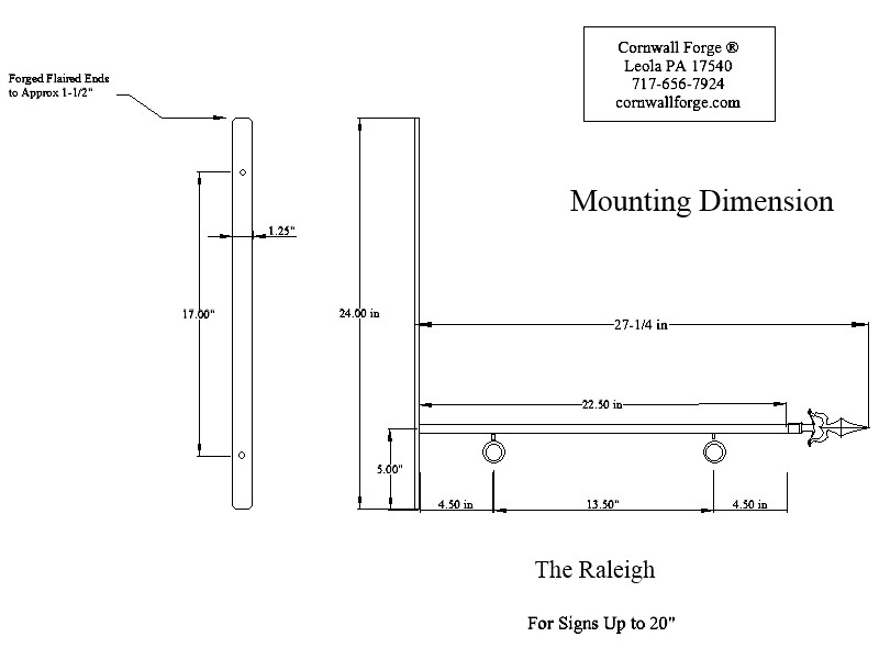 vertical mounting plate is also hammer forge measuring 1-1/2 x 5/16