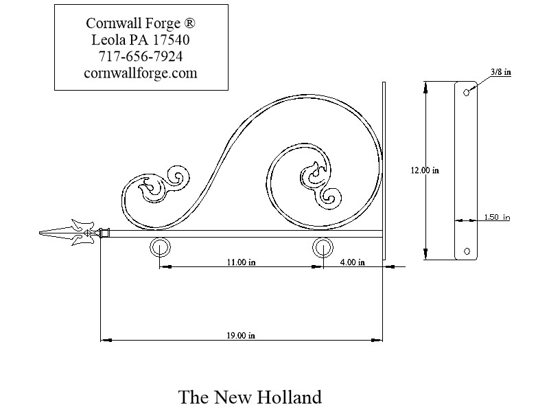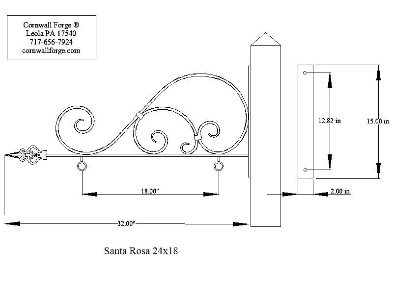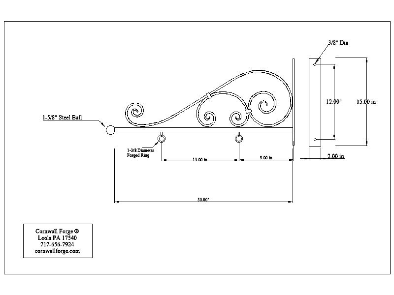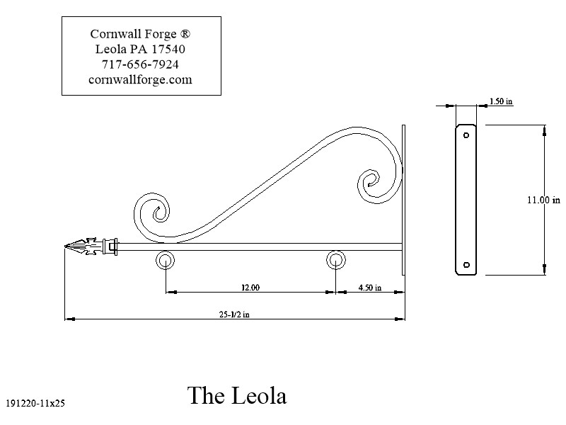 forged at 2 inches wide and 22 inch in length. The scroll is 3/4 inch x