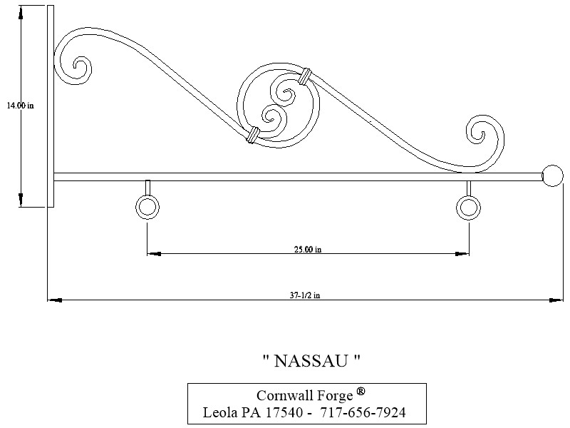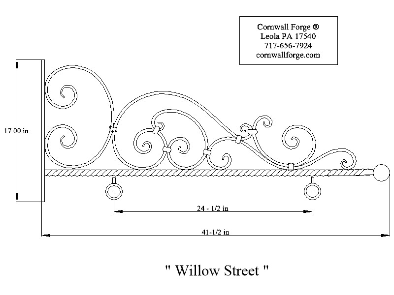 rings on 25" centers. The scrolls are 1/2" round with "fish tail"